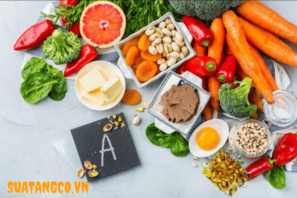 VitaminA có trong các thực phẩm như: các loại gan động vật như gan gà, cá, lơn và các loại thực phẩm khác như gấc, rau ngót, Phô mai dê, Khoai lang, nấu chín, Cà rốt sống…